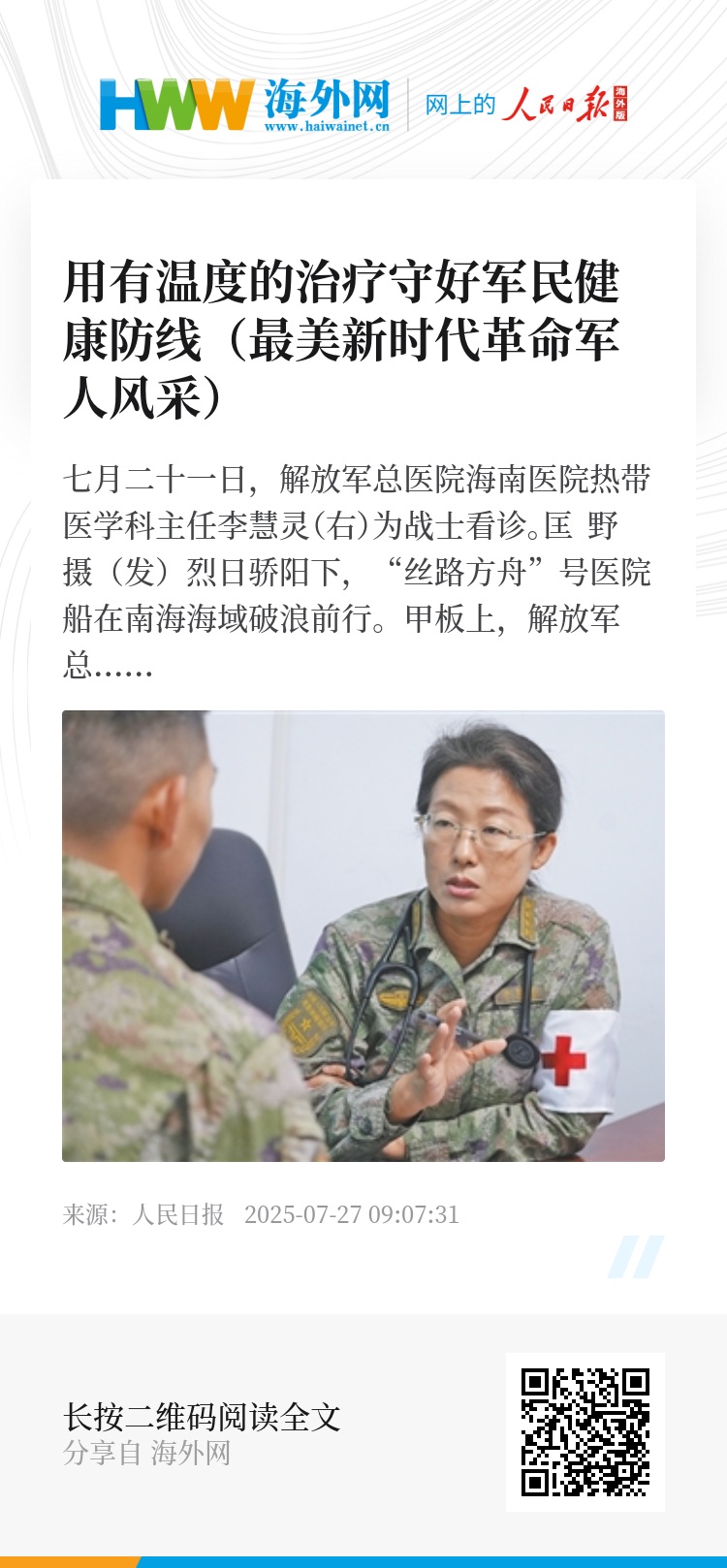 “科学是严谨的,但医生是有温度的。我们要用有温度的治疗,守好官兵和群众生命健康的防线。”李慧灵说。(本报记者 李龙伊)