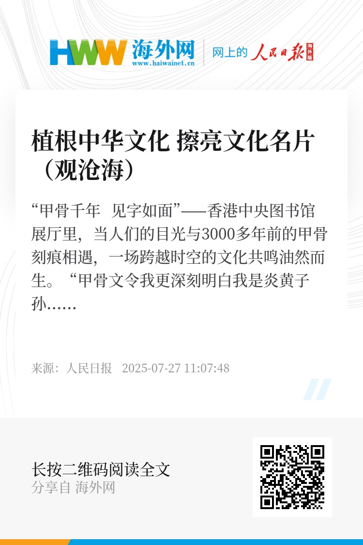 “甲骨千年 见字如面”——香港中央图书馆展厅里,当人们的目光与3000多年前的甲骨刻痕相遇,一场跨越时空的文化共鸣油然而生。“甲骨文令我更深刻明白我是炎黄子孙”“甲骨文了不起,伟大的汉字”……观众在留言簿上朴素而真挚的话语,恰是香港“中华文化节2025”的生动注脚。