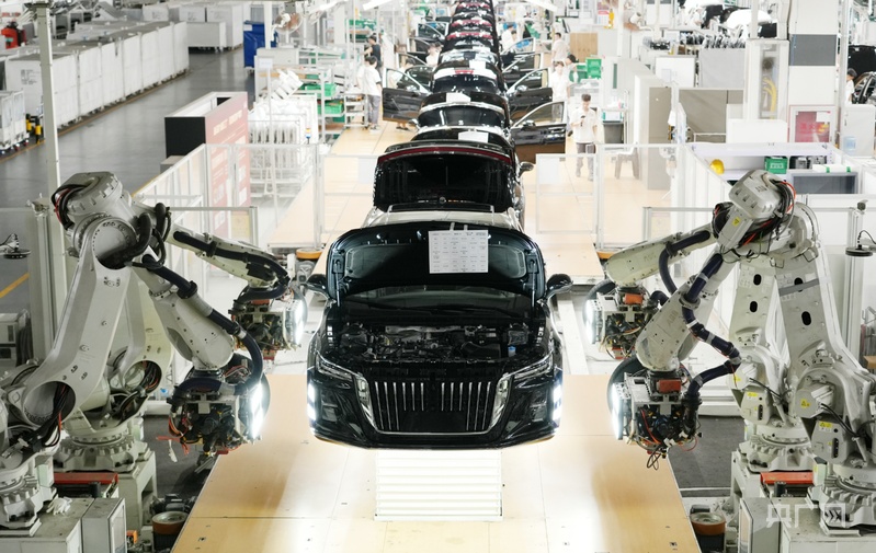 在中国一汽红旗繁荣厂区,14条自动生产线每天能装配下线500余辆汽车,这一速度让这座工厂稳居国内汽车制造第一梯队。