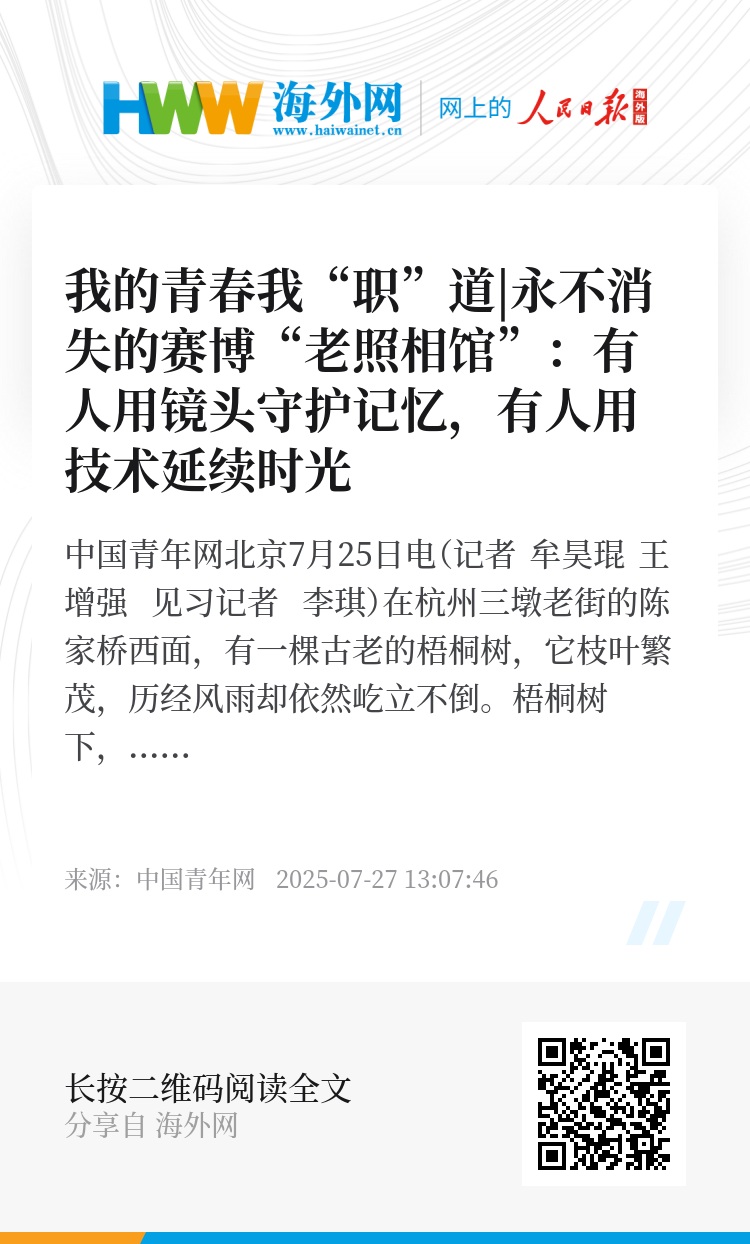 在这个快速发展的时代,我们或许会失去一些东西,但也会因为科技的力量,而让一些美好的事物得以永恒。这座云端“三墩老照相馆”,就是最好的证明。
