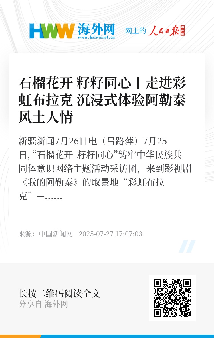 中新网新疆新闻7月26日电(吕路萍)7月25日,“石榴花开 籽籽同心”铸牢中华民族共同体意识网络主题活动采访团,来到影视剧《我的阿勒泰》的取景地“彩虹布拉克”——哈巴河县齐巴尔镇吉林新村,循着剧中的真实场景,采访团在特色民居与非遗间探寻,深切感受各民族文化交融共生的深厚底蕴。