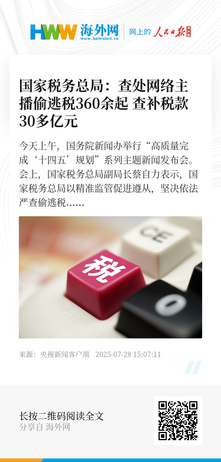 会上,国家税务总局副局长蔡自力表示,国家税务总局以精准监管促进遵从,坚决依法严查偷逃税,累计曝光60余起网络主播、文娱领域从业人员偷逃税案件,在警示震慑中强化依法纳税观念。