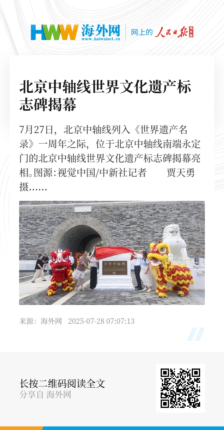 32882073,.北京中轴线世界文化遗产标志碑揭幕,.2025-07-28 07:58:13,.204428,.张青津、卢思宇