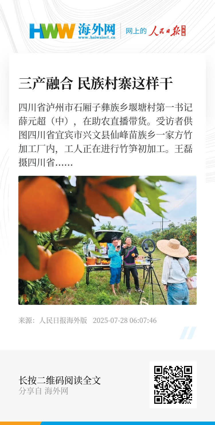行走三市,记者见证了一个又一个民族村寨的火热实践,亦明白了产业之于乡村的意义。数据显示,“十四五”期间,四川先后投入15亿元,支持全省235个民族村寨因地制宜发展特色产业,带动各族群众增收超20%。从一产粗放、二产初级、三产初现,到一二三产不断融合升级,四川各族群众在共建共享中不断迈向共同富裕。(本报记者 吴雪聪)