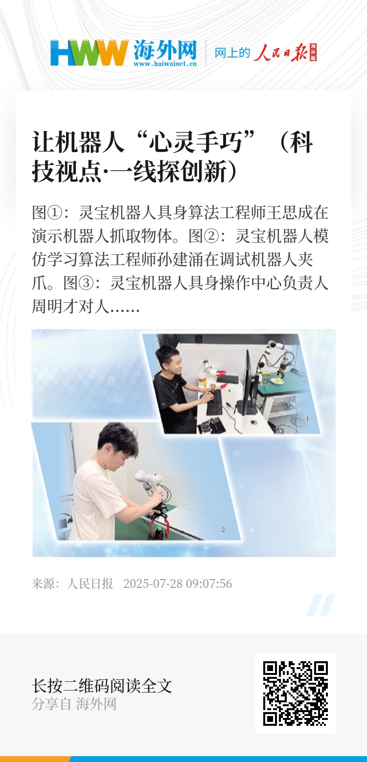 “操作是具身智能的核心能力,对于产业发展具有重要意义。”在灵宝机器人具身操作中心负责人周明才看来,目前具身智能已经实现了“形似”,但如何使其像人类那样去感知和操作,仍是一个逐步发展的过程。特别是随着个性化需求增多,让具身智能更加柔性化,以兼容更多应用场景,是研发的一个重要目标。