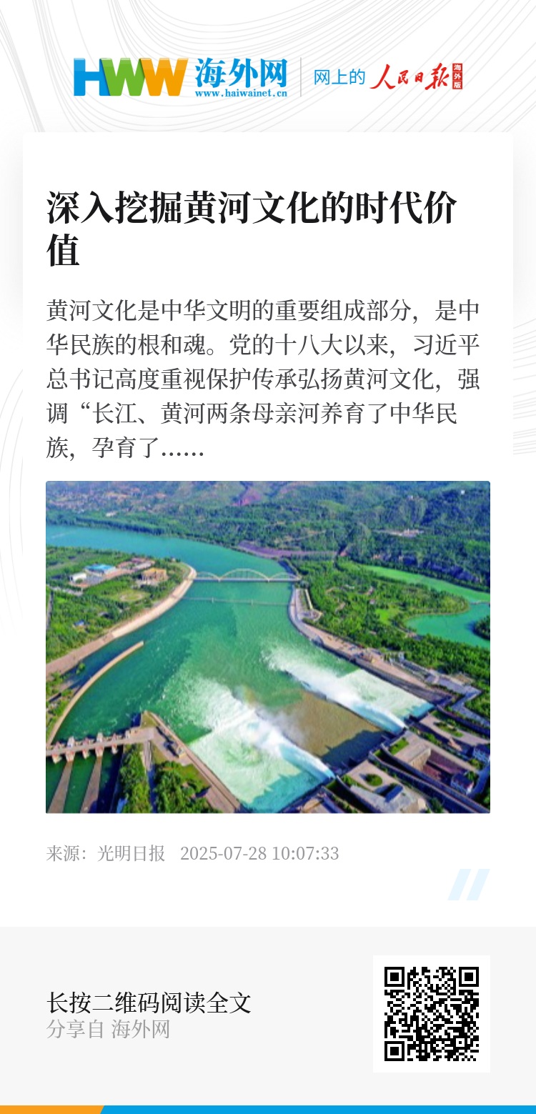 习近平总书记指出:“一种价值观要真正发挥作用,必须融入社会生活,让人们在实践中感知它、领悟它。”新时代新征程,只有做好保护传承、研究阐释、转化利用、对外传播等大文章,推动黄河文化与时代同频共振、代代赓续,才能持续发挥黄河文化的激励凝聚作用,汇聚起推动实现中国式现代化、实现中华民族伟大复兴的磅礴伟力。