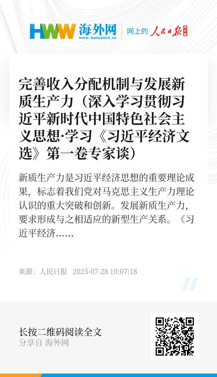 按照马克思主义政治经济学基本原理,在社会化生产和市场经济条件下,宏观的分配并不直接面向生产者个人,而是包括两次分配过程:第一次分配是市场对社会总产品在企业之间分配,第二次分配是企业对其在市场分配到的成果在内部进行分配。这一框架可以用于分析对新质生产力不同部门之间的分配以及对发展新质生产力的企业内部的分配。