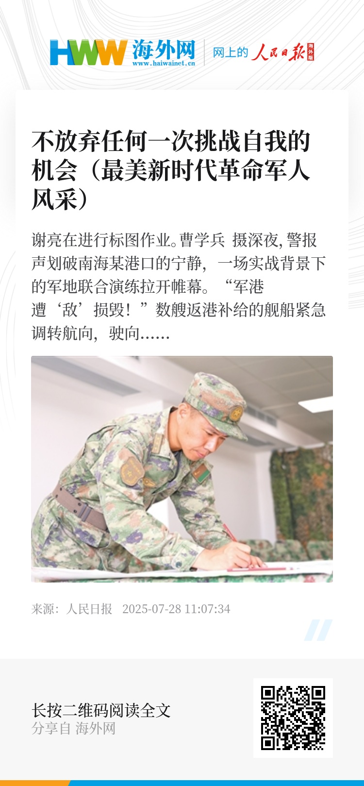 2021年12月,谢亮调任沿海一线某部工作,开启了向海图强的奋斗之旅。“如何让民兵队伍在新时代取得新成绩、焕发新风采?”谢亮在思考。
