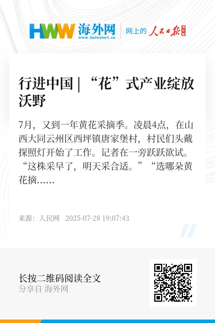 从田间到餐桌,从食品到商品。5年来,大同把黄花产业作为农业经济发展的重要支柱与乡村振兴的关键引擎,与山西农业大学合作共建大同黄花产业发展研究院,成立了10个协同研究中心,在黄花产业科技攻关、成果转化等方面进行深入研究;依托国家级大同黄花现代农业产业园,培育了坊城新村黄花产业园、宜发同诚、冰华等黄花精深加工主体,开发出六大系列130余种黄花产品;以黄花为媒,打造“农文旅教”融合发展新模式,建成23个特色旅游景点,年接待游客超200万人次……大同黄花的全产业链持续壮大,年产值突破40亿元。(马立明、桑莉媛、麻潞、赵芳、卢鹏宇、董童、张超宁、马梦迪)