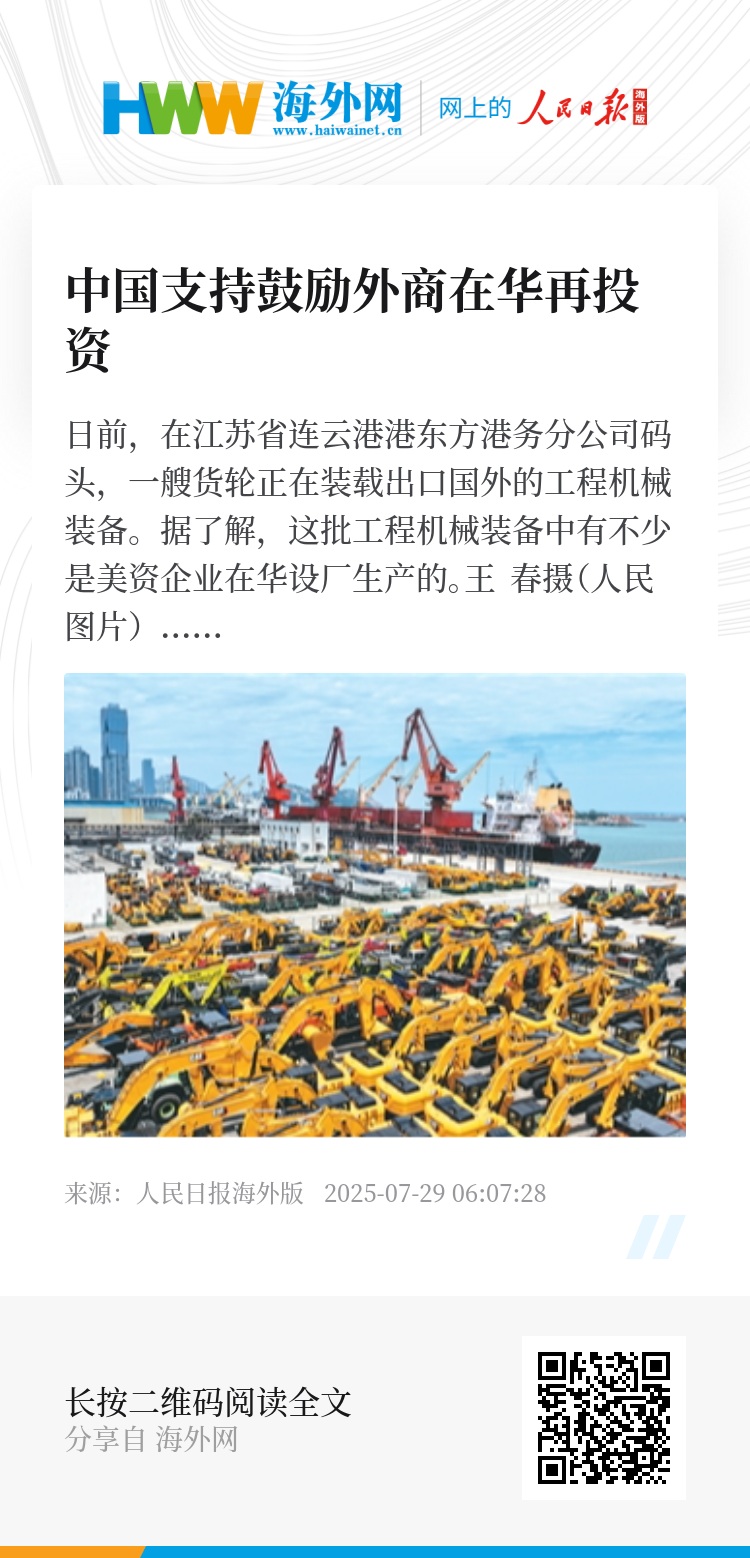 在上海,雷克萨斯新能源项目从签约落地到开工建设不足5个月;在江苏,范德威尔·中国总部及研发制造基地投产,成为这家比利时企业百年历史上规模最大的单体投资项目之一;在湖北,魏德曼电力绝缘科技(武汉)有限公司7月21日举行开工奠基仪式,总投资约9100万美元的项目聚焦中国高端变压器材料市场……最近,不少外商“老朋友”的再投资项目接连落地,以实际行动体现了看好中国、扎根中国的坚定信心。