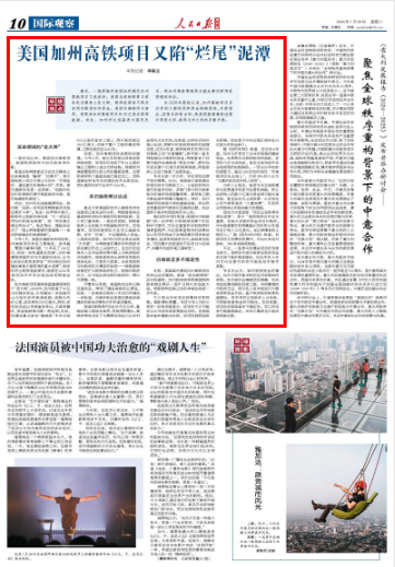目前,美国国内围绕加州高铁项目的争议还在继续。美国“政治新闻网”近日报道称,加州政府或将同美国联邦政府就此展开一场旷日持久的法庭大战,特朗普和纽森之间的争端也将进一步升级。
