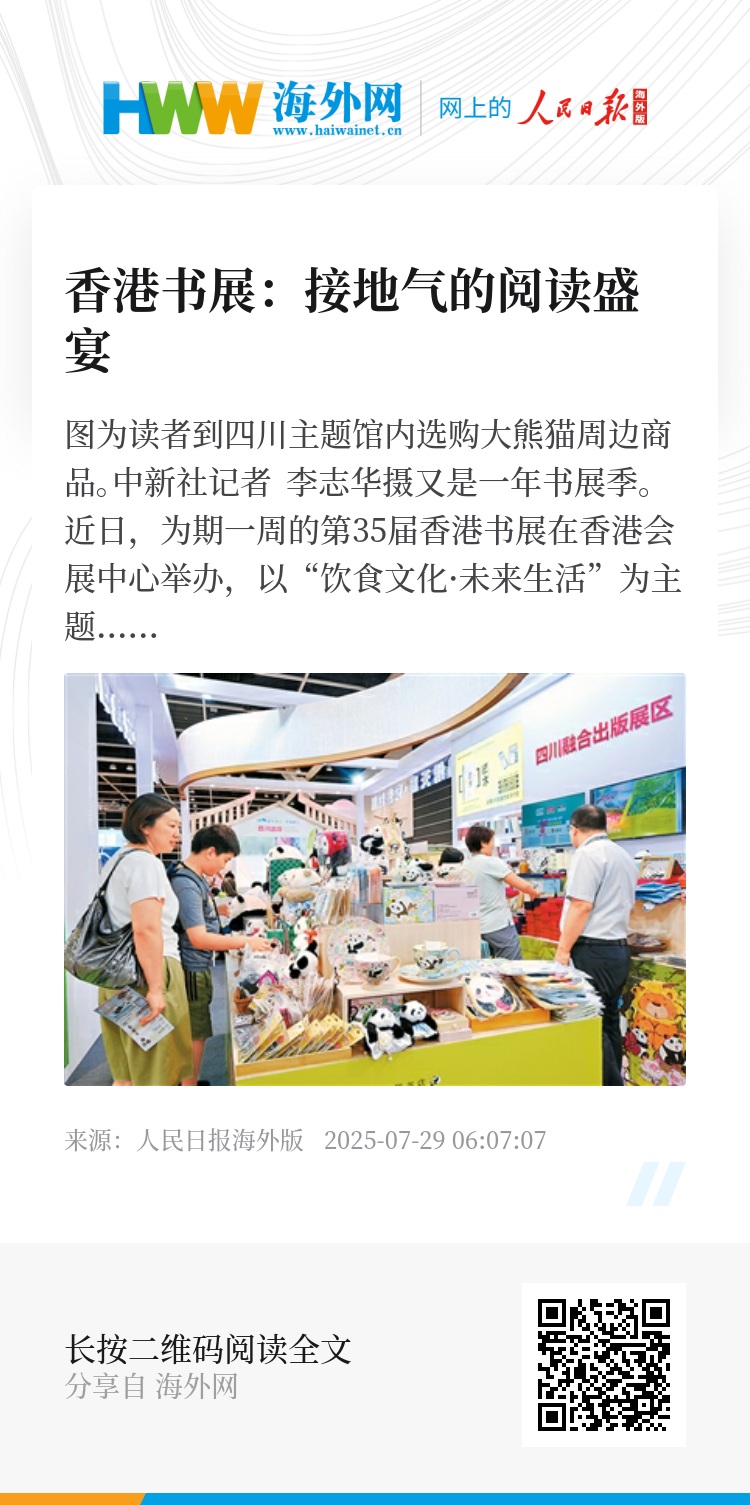 又是一年书展季。近日,为期一周的第35届香港书展在香港会展中心举办,以“饮食文化·未来生活”为主题,场内场外举办超过620项文化活动。世界各地知名作家现身说法,与读者深度对话,不少书商也推出新书,吸引大批中外读者慕名而来,香港再次掀起文化热潮。