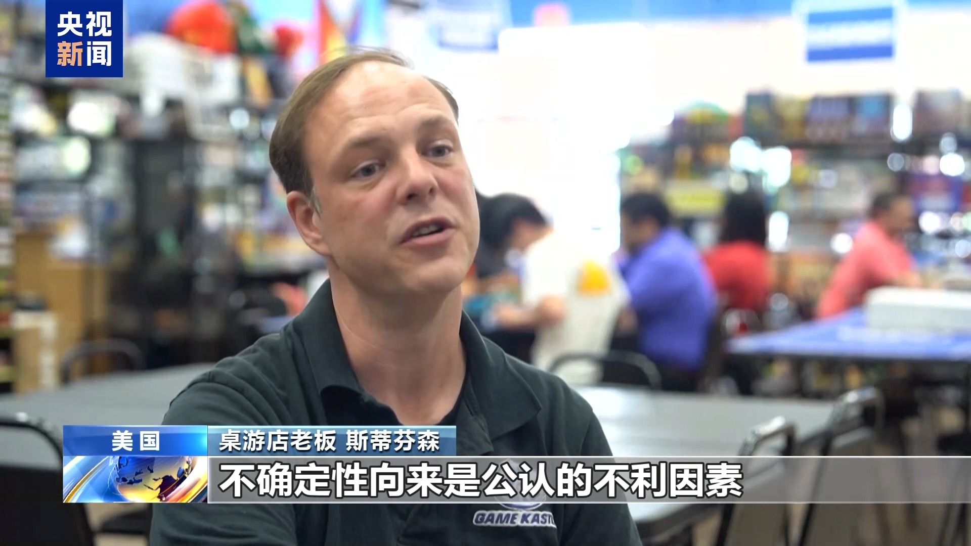 桌游店老板 斯蒂芬森:对企业而言,不确定性向来是公认的不利因素。我不喜欢关税,它会带来问题。而且,如果对相关产品征收关税,很多事情会变得非常棘手,甚至可能导致一些游戏生产商破产。