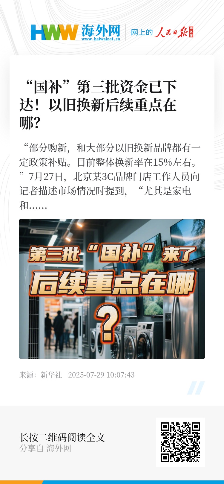 记者随机走访了北京多家家电、数码产品商家了解到,当前市场上已有部分品牌启动“厂家补贴”活动。与此同时,一些城区也陆续推出区域性消费券。另有部分商家透露,根据他们收到的相关通知,下半年的“国补”预计将于10月到位。