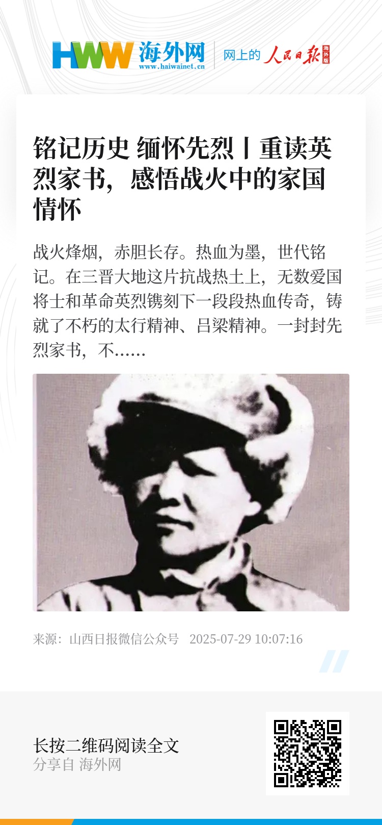 一封封先烈家书,不仅是对亲人的眷恋、对家国的忠诚,更是投身民族解放的动员令,是中华儿女不屈不挠的报国志。