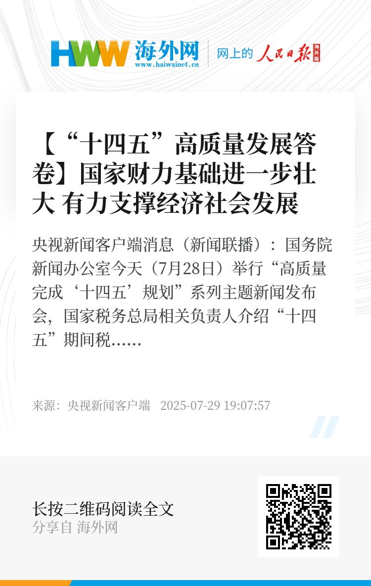 央视新闻客户端消息(新闻联播):国务院新闻办公室今天(7月28日)举行“高质量完成‘十四五’规划”系列主题新闻发布会,国家税务总局相关负责人介绍“十四五”期间税收改革与发展情况。
