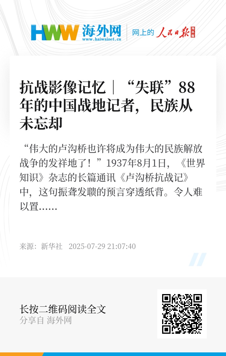 1937年8月1日,《世界知识》杂志的长篇通讯《卢沟桥抗战记》中,这句振聋发聩的预言穿透纸背。