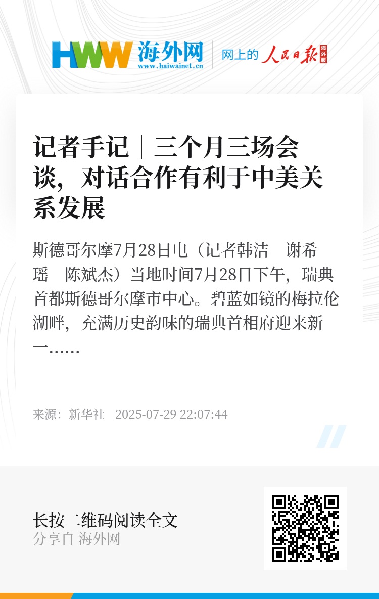 当地时间28日一早,记者赶到瑞典首相府时,已有不少媒体记者在场等候。“我们从全球增派记者支援报道,期待这一轮谈判能有新进展,比如进一步降低关税或者继续延长关税暂缓期。”一名西方媒体记者说。