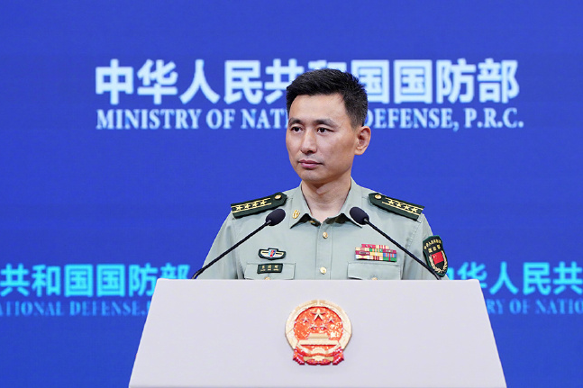 7月30日下午,国防部举行例行记者会,国防部新闻发言人张晓刚大校答记者问。