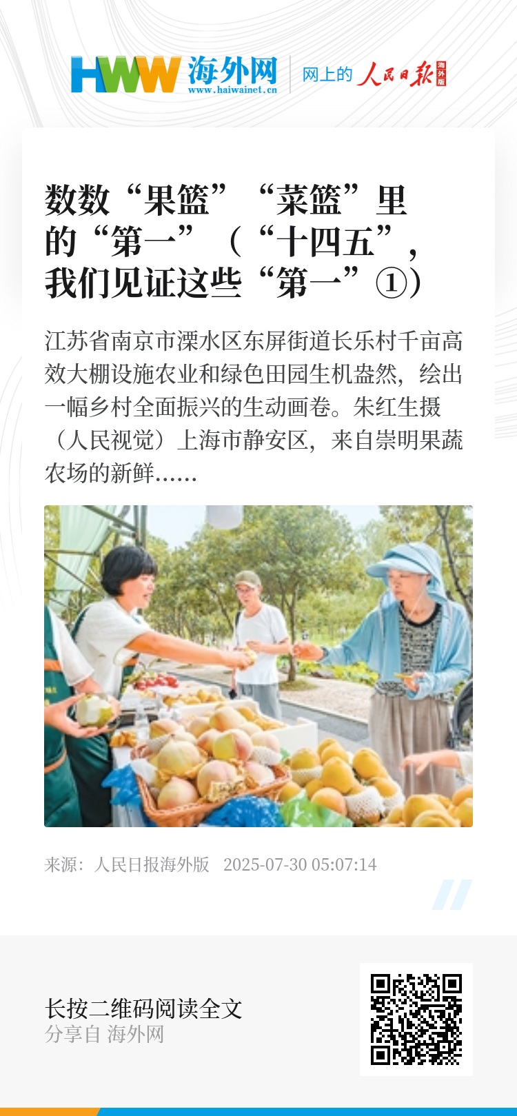 从盛夏的西瓜、桃子到秋天的柑橘、石榴,从春天的蚕豆、香椿到冬天的白菜、土豆,“果篮”“菜篮”里藏着哪些世界第一?蕴含着哪些新趋势、新变化?本报记者进行了采访。