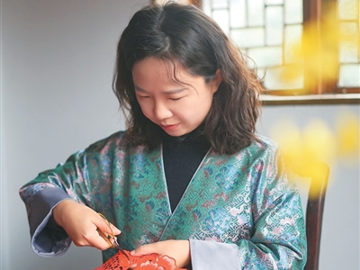 在浙江台州,留学法国的杨雨潇放弃了当地的工作机会,回到家乡临海,接手了母亲张秀娟开办的剪纸博物馆。几年时间里,在兼顾剪纸审美和收藏价值的前提下,杨雨潇努力创新产品种类,提高剪纸的实用性。致力于传承发展的同时,她将剪纸技艺转化为共富引擎,以一把剪刀、一张红纸为笔,写下了临海剪纸新的一页。