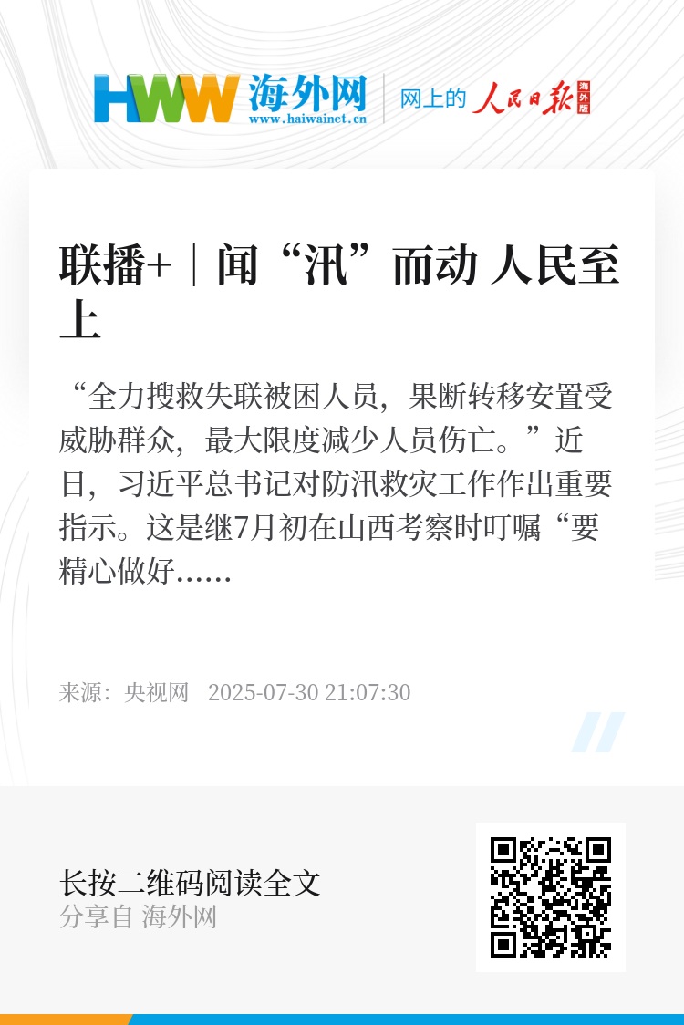 这是继7月初在山西考察时叮嘱“要精心做好防汛抗洪预案和防灾减灾救灾准备工作”后,总书记再次对防汛救灾工作提出要求。人民生命财产安全始终是总书记“时时放心不下”的牵挂。