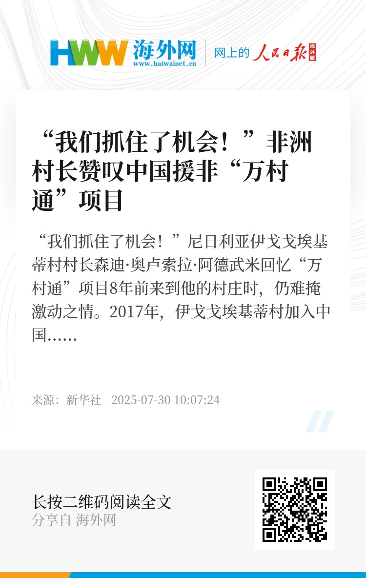 2025年7月,阿德武米受邀来中国参与交流活动,这也是他首次踏上这片土地,交流访问的经历进一步拉近了他与这个远方国度的距离。阿德武米说,越来越多尼日利亚的学生们来此学习深造,期待他们把技术和知识带回国。(记者、视频:王修楠;编辑:金正)