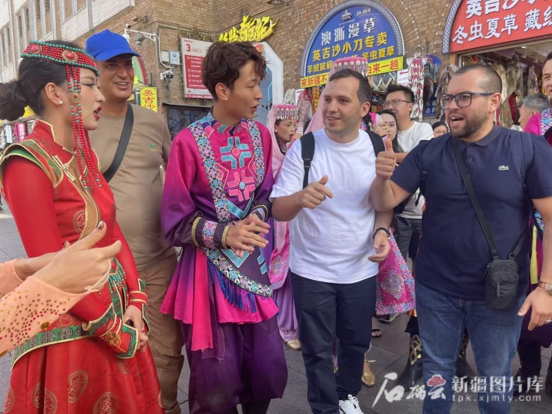 在新疆国际大巴扎,游人如织,热闹非凡。鲜艳的民族服饰、精美的工艺品、各类特色小吃等吸引着代表团成员驻足观看、品尝。“你们好,远方的客人。”大巴扎附近一家餐厅的演艺人员主动向代表团成员打招呼并与他们合影。阿尔及利亚白天电视台主编阿卜达拉赫·穆斯塔法-图恩西开心地说:“我要把这份美好的记忆带回阿尔及利亚。”