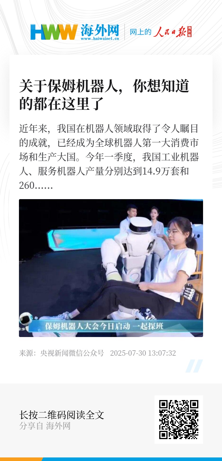市场规模持续扩大,中国“保姆”服务全球,国产保姆机器人出口海外,在国际市场斩获佳绩;
