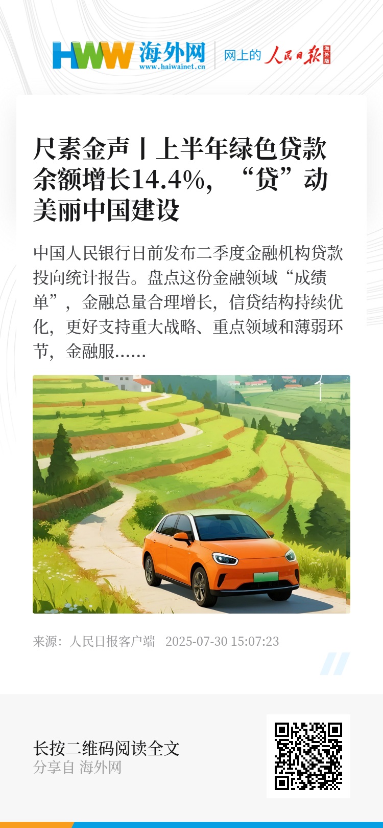 一组组亮眼数据,是我国持续推动绿色金融高质量发展的生动注脚。