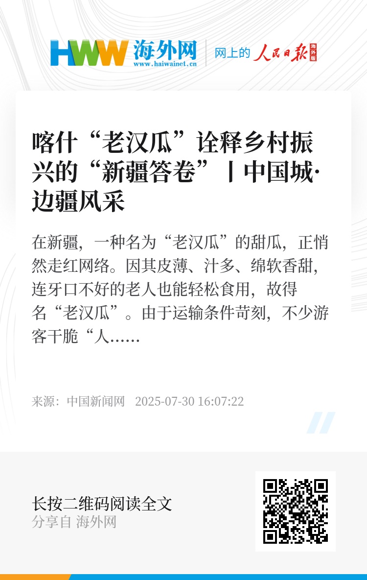 一颗甜瓜,不仅甜进百姓生活,也见证着乡村振兴的“新疆答卷”。