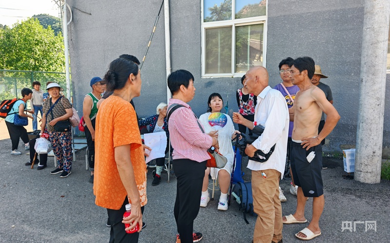 等待转移的村民和村书记王起春(右二)说着自己家的情况(央广网记者 庞婷 摄)