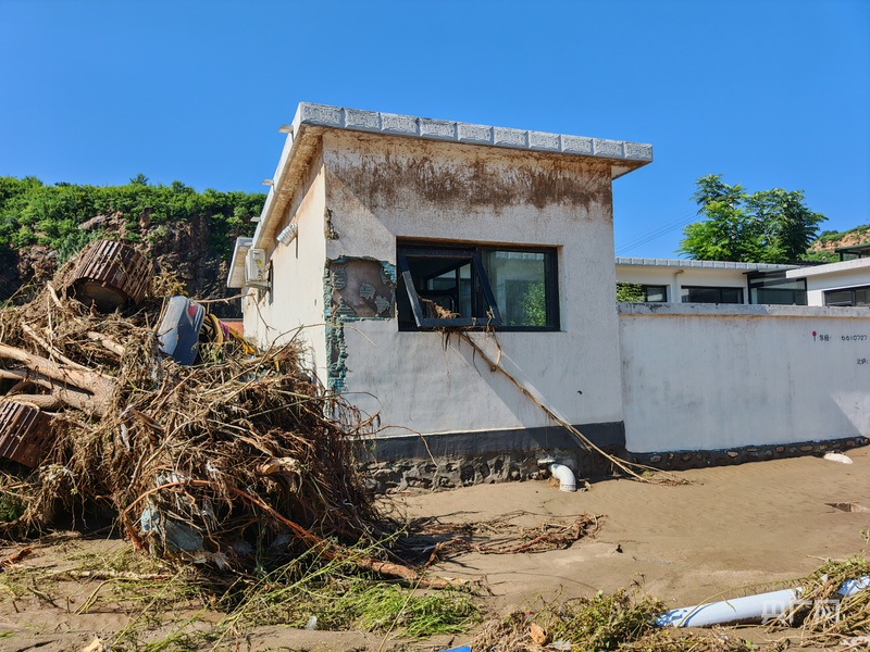 墙壁上近2米高的泥水线,无声诉说着洪水的凶猛。王起春回忆,7月26日晚暴雨突袭,洪水瞬间漫入村内,短短几分钟水流就从膝盖处涨至腰部以上,不少村民家里涌进几十厘米的淤泥,当时积水最深时能漫过胸口。村里的车有的被冲进河道,有的被冲出几公里,有车辆在两排房子中间通道处相撞卡在其中,杂物、树木、淤泥堆叠在一起。