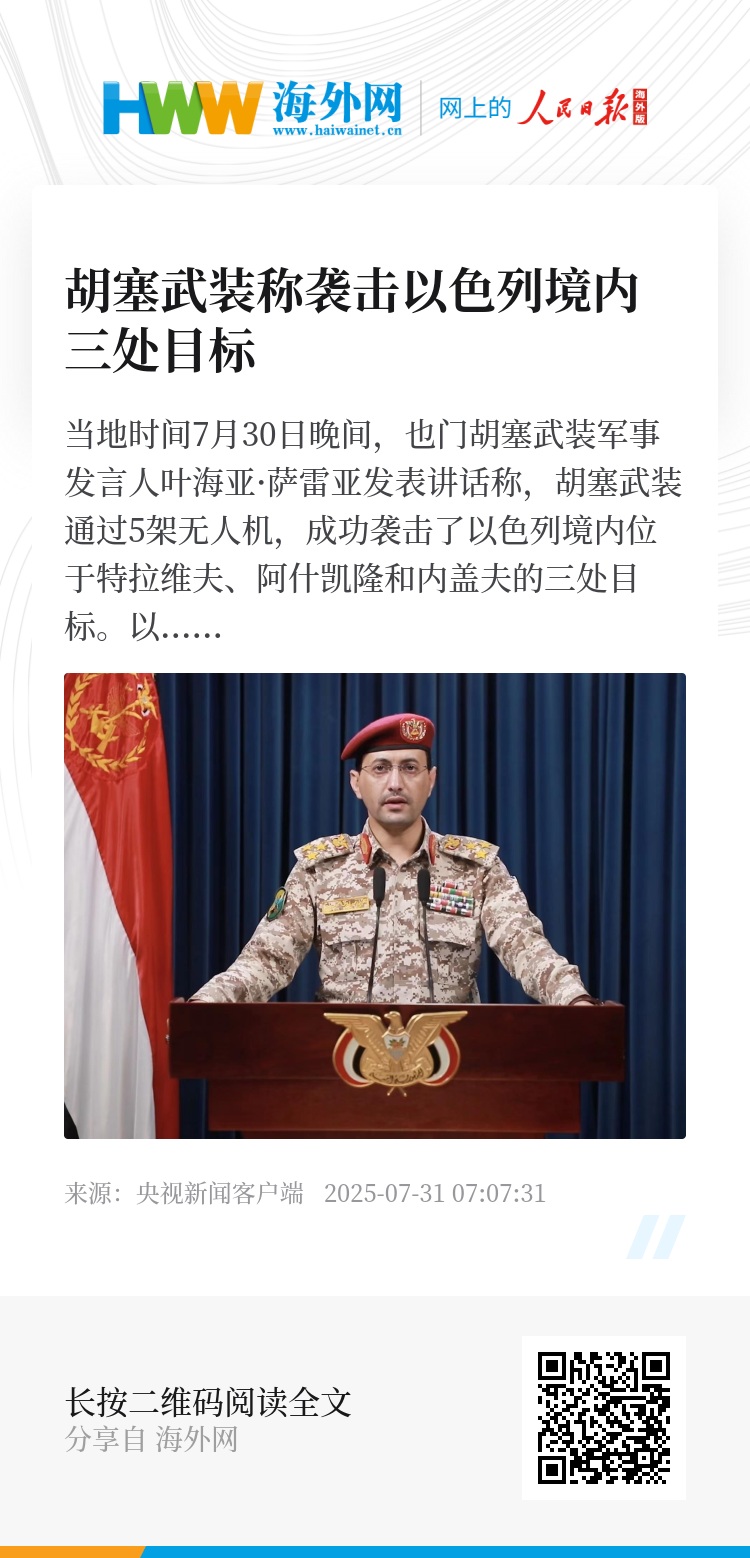 以色列方面对此暂无回应。(总台记者 张雨辰)