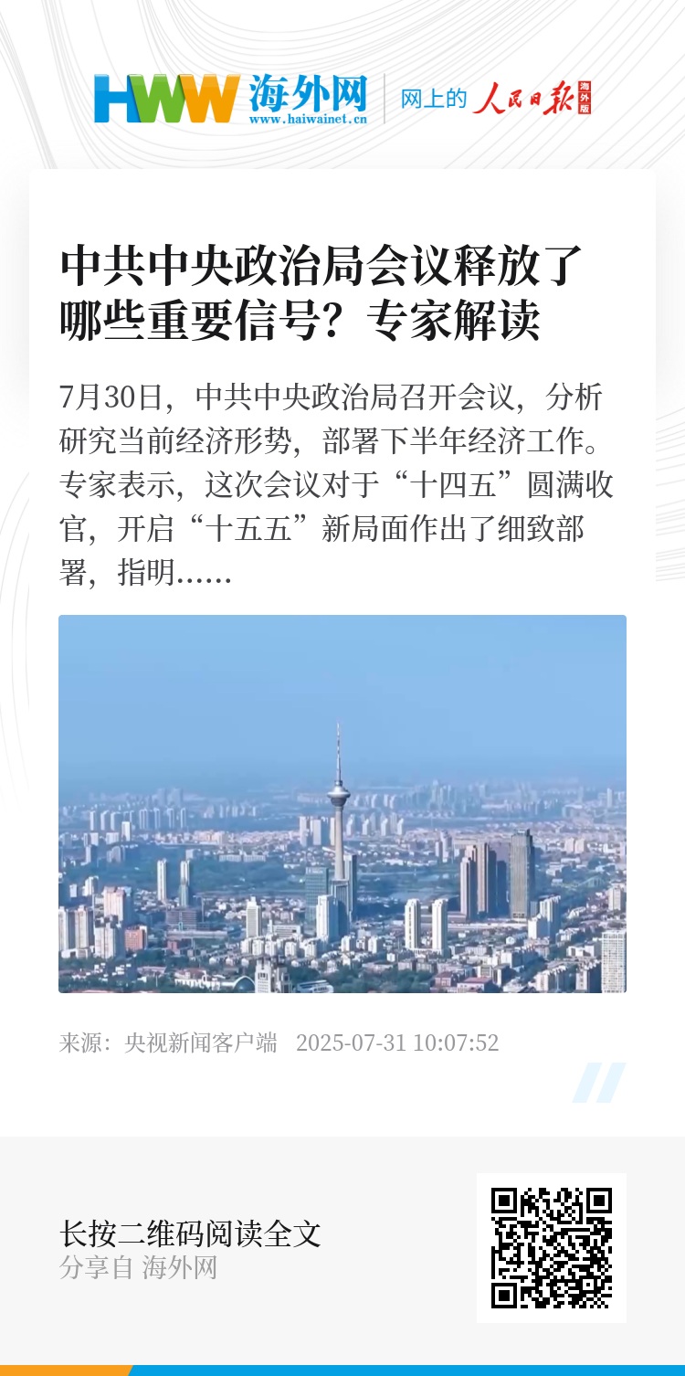 7月30日,中共中央政治局召开会议,分析研究当前经济形势,部署下半年经济工作。专家表示,这次会议对于“十四五”圆满收官,开启“十五五”新局面作出了细致部署,指明了重要方向。