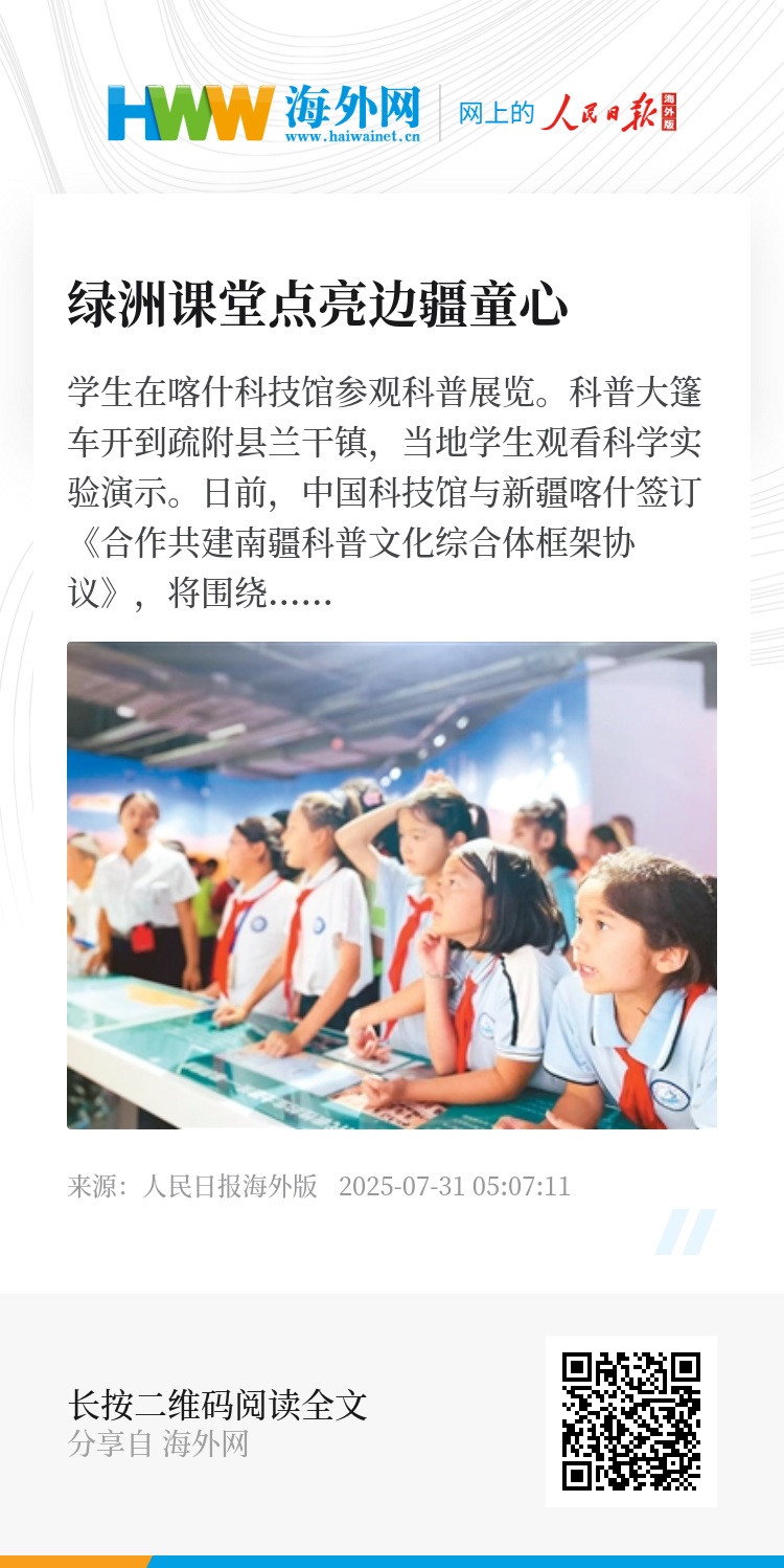 日前,中国科技馆与新疆喀什签订《合作共建南疆科普文化综合体框架协议》,将围绕南疆科普文化综合体建设打造现代化平台,涵盖数字化展厅、流动科普教育设施、青少年创客空间等核心模块。近年来,从科普大篷车到科技馆,再到科普文化综合体,借助丰富的展品,科学知识不再只是书本上的文字,而是变得更触手可及,为当地百姓尤其是青少年提供丰富的科普体验。