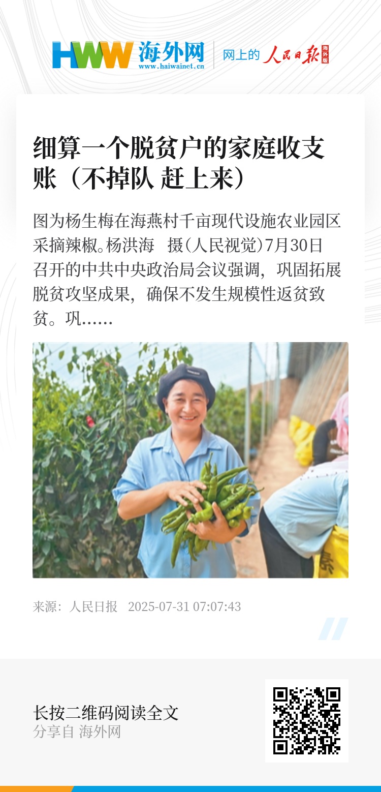 7月30日召开的中共中央政治局会议强调,巩固拓展脱贫攻坚成果,确保不发生规模性返贫致贫。
