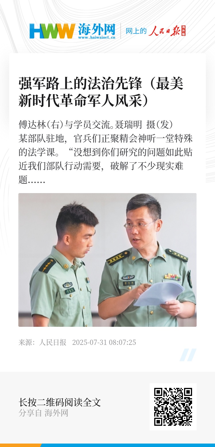 某部队驻地,官兵们正聚精会神听一堂特殊的法学课。“没想到你们研究的问题如此贴近我们部队行动需要,破解了不少现实难题!”课程结束,讲授者——中国人民解放军国防大学政治学院西安校区教授傅达林获得了官兵们的点赞。
