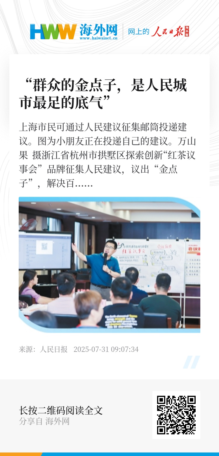 人民建议,让千万市民成为城市建设的“智库”,城市建设便拥有了不竭的智慧源泉。