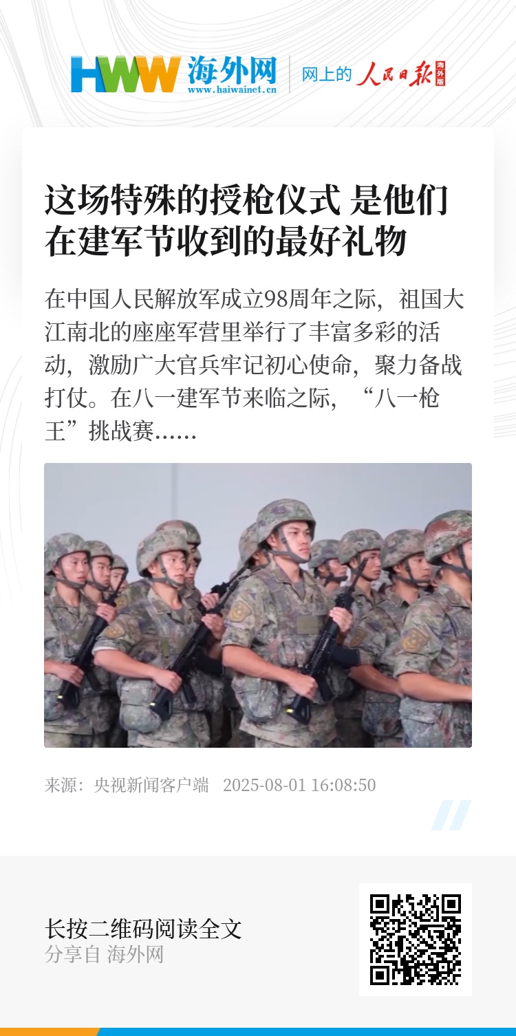 在八一建军节来临之际,“八一枪王”挑战赛在武警新疆总队某机动支队拉开帷幕。赛场上,手枪快速射击、步枪精度射击、狙击步枪远距离狙击等课目轮番开展,选手们稳定据枪,展现出“人枪合一”的过硬素养。建军节里,无锡联勤保障中心组织官兵通过参观教育基地、讲解红色故事等多种形式,引导官兵感悟初心使命,奋进新征程。在武警湘潭支队,官兵们赴驻地红色场馆见学,在追寻历史足迹中汲取智慧和力量,以更加昂扬的姿态投身强军兴军伟大实践。