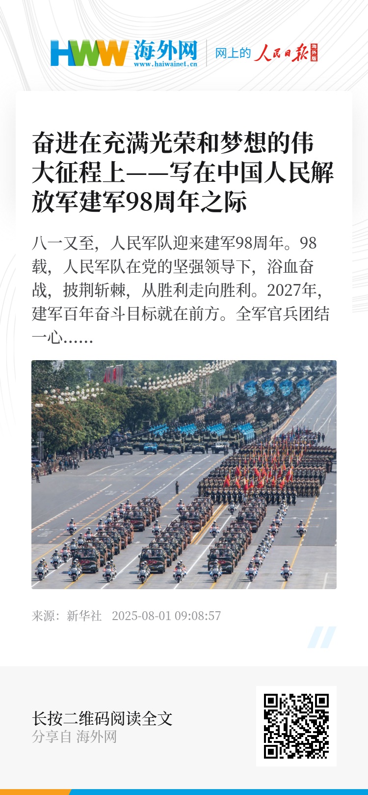 站在建军98周年这一历史节点上,面对前所未有的机遇挑战,在习主席率领下,人民军队带着前所未有的信心,阔步迈向世界一流。