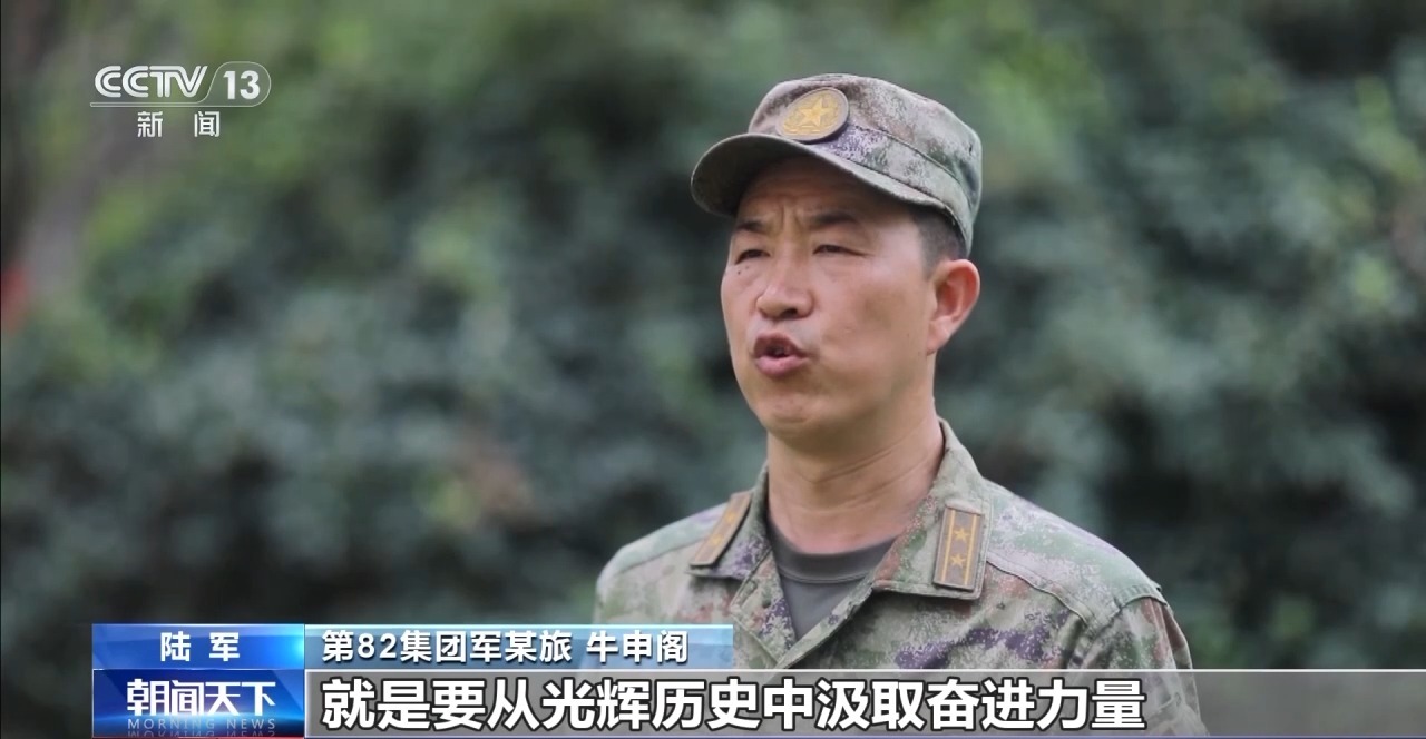第82集团军某旅 牛申阁:在建军九十八周年之际,我们举行庄严的升旗仪式,就是要从光辉历史中汲取奋进力量,在仪式中铸牢忠诚之魂,引导官兵时刻保持警惕,锤炼过硬本领,为实现强军目标,贡献全部力量。