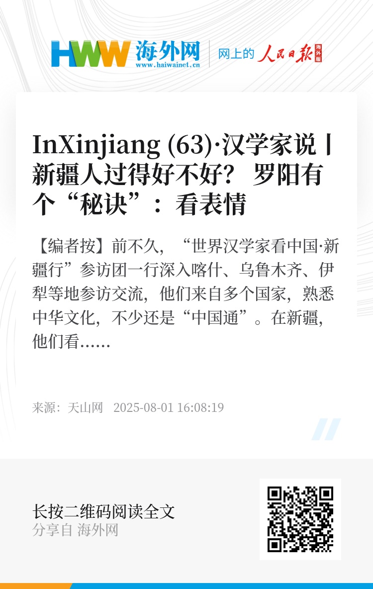 前不久,“世界汉学家看中国·新疆行”参访团一行深入喀什、乌鲁木齐、伊犁等地参访交流,他们来自多个国家,熟悉中华文化,不少还是“中国通”。在新疆,他们看到了什么?有何种感受?即日起,《InXinjiang》栏目策划推出《汉学家说》专题系列报道,还原这批汉学家的新疆之行。