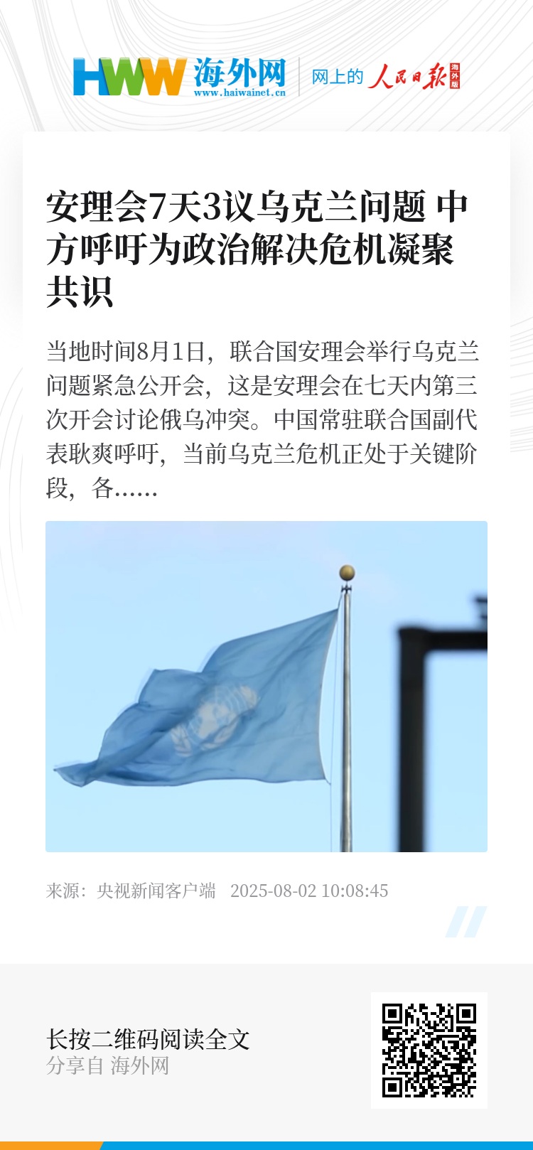 当地时间8月1日,联合国安理会举行乌克兰问题紧急公开会,这是安理会在七天内第三次开会讨论俄乌冲突。中国常驻联合国副代表耿爽呼吁,当前乌克兰危机正处于关键阶段,各方应相向而行,为实现危机政治解决凝聚更多共识,做出更大努力。