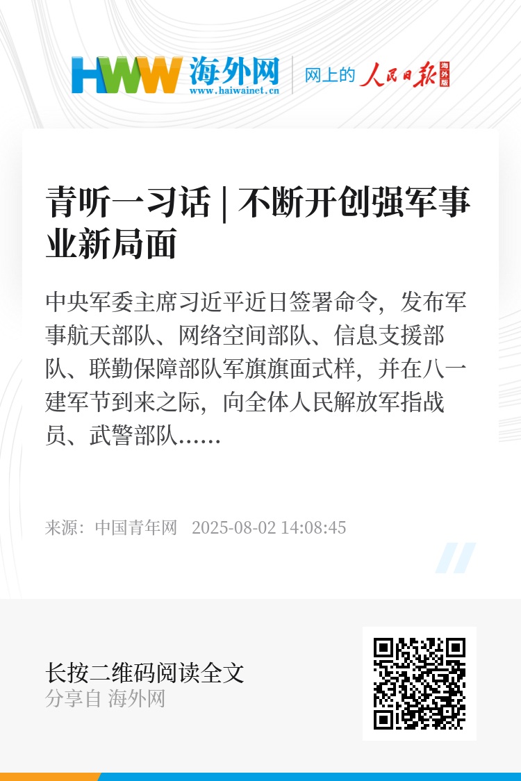 中央军委主席习近平近日签署命令,发布军事航天部队、网络空间部队、信息支援部队、联勤保障部队军旗旗面式样,并在八一建军节到来之际,向全体人民解放军指战员、武警部队官兵、军队文职人员、预备役人员和民兵致以节日的祝贺。