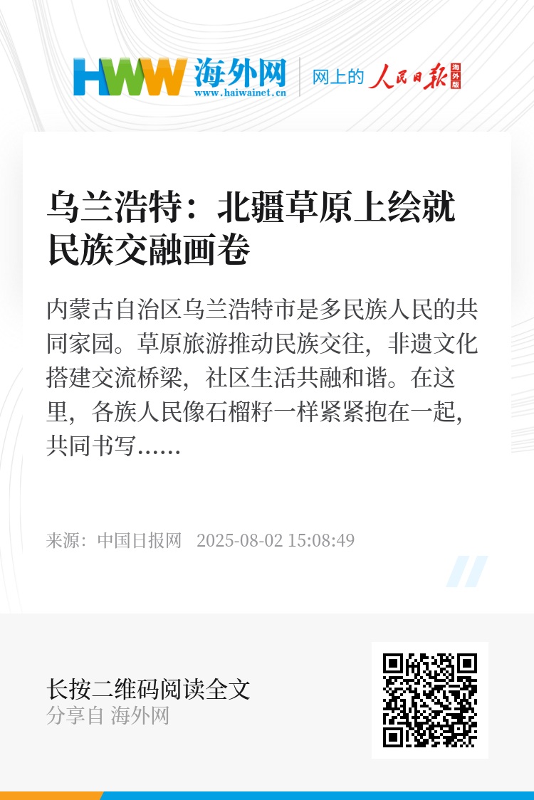 内蒙古自治区乌兰浩特市是多民族人民的共同家园。草原旅游推动民族交往,非遗文化搭建交流桥梁,社区生活共融和谐。在这里,各族人民像石榴籽一样紧紧抱在一起,共同书写民族团结进步的新篇章。(记者 叶枫婷 视频 叶枫婷)