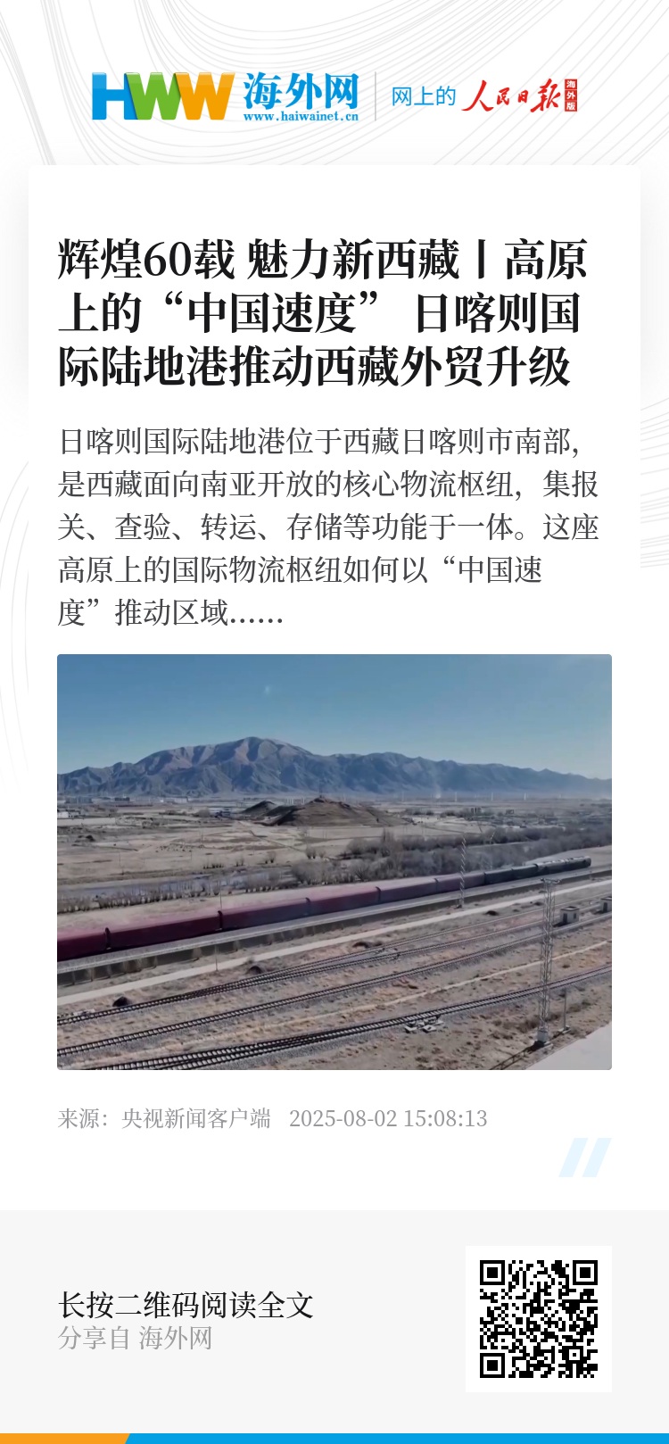 日喀则国际陆地港位于西藏日喀则市南部,是西藏面向南亚开放的核心物流枢纽,集报关、查验、转运、存储等功能于一体。这座高原上的国际物流枢纽如何以“中国速度”推动区域经济的发展。
