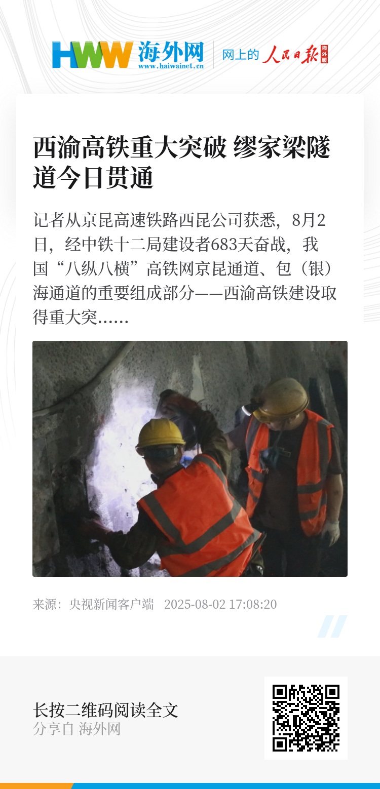 记者从京昆高速铁路西昆公司获悉,8月2日,经中铁十二局建设者683天奋战,我国“八纵八横”高铁网京昆通道、包(银)海通道的重要组成部分——西渝高铁建设取得重大突破,全长1285米的缪家梁隧道顺利贯通,至此西渝高铁康渝段隧道贯通已达28座,为全线按期通车奠定了坚实基础。