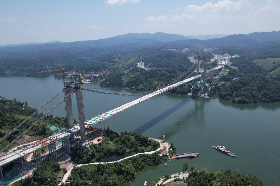 主桥设计为跨径800米双塔单跨悬索桥,是呼北高速张家界至官庄段的关键控制性工程。