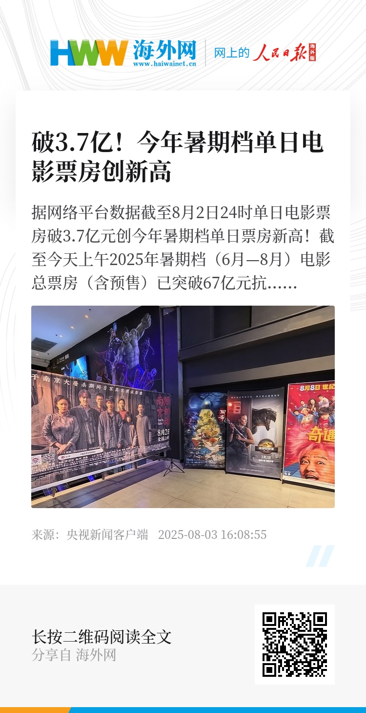 创今年暑期档单日票房新高!